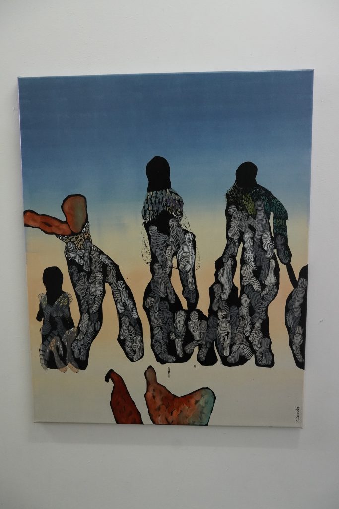 between the lines“ heißt das Motto der Ausstellung – betrachten, erkunden, sich Gedanken machen, „zwischen den Zeilen“…Die ausgestellten Werke „eröffnen vielschichtige Interpretationsräume, in denen Bedeutung nicht festgelegt, sondern prozessual erfahrbar  wird.  Sie fordern eine aktive Auseinandersetzung mit dem Wahrgenommenen und dem Nicht-Gesagten – und regen dazu an, im übertragenen Sinne „zwischen den Zeilen“ zu lesen.“4 Bizarr anmutende, verschlungene, pinselartige Formen, bisweilen ’schwebend‘ im Raum, flächig aufgetragene Farben und vieles andere mehr lassen sicher – zuächst – manchen Betrachter/manche Betrachterin vor einem künstlerisch-abstrakten Rätsel vielleicht wirklich etwas ratlos zurück. So kann eine gewisse ‚Distanz‘5 geschaffen werden, die den Betrachter auffordert, sich auf das ‚Bild‘ einzulassen, es emotional-kreativ anzugehen, sich eigene Gedanken dazu zu machen. Dieser Prozess der ‚Auseinandersetzung‘ mit dem vom Künstler/von der Künstlerin geschaffenen Werk ist gerade das Inspirierende, Spannende – eine Freiheit, die man/frau z.B. bei manch figürlichen Darstellungen nicht immer in diesem Maße genießt. Dennoch gibt es bisweilen – versteckte – ‚Anspielungen‘ auf soziale Verhältnisse, die aber nicht endgültig vom Betrachter ‚entschlüsselt‘ werden können, was gerade durch die Nicht-Eindeutigkeit den Reiz der entsprechenden Werke ausmacht. ‚Untertitel‘ wie z.B. „Wer weiß. was wirklich passiert ist“ oder „Ich habe nichts gesehen“ mobilisieren alle Sinne, um vielleicht doch noch den einen oder anderen ‚erhellenden‘ Gedanken, auch assoziativ, aufleuchten zu lassen. Mit neuen Augen kann man/frau sich dann erneut dem Kunstwerk zuwenden und manchem Detail (einen eigenen)Sinn verleihen.